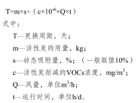 企業(yè)可參照以下公式計算活性炭更換周期。 計算示例:某企業(yè),通過活性炭吸附設(shè)施處理的VOC...